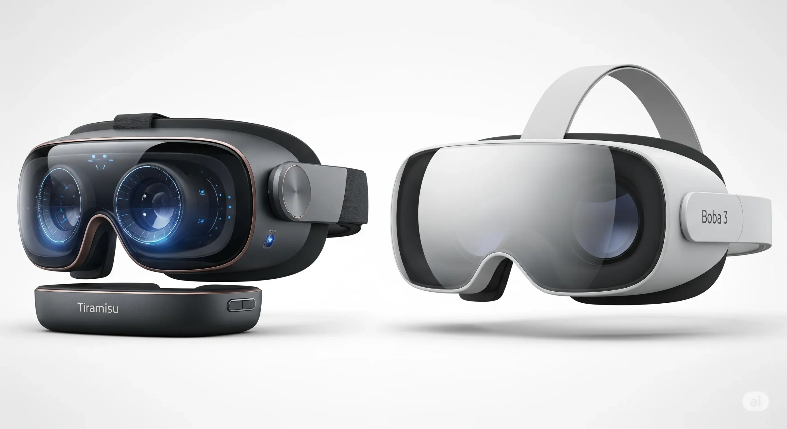 The Quest 3 is a commercially available, mass-market VR headset designed for broad accessibility. Tiramisu and Boba 3, by contrast, push experimental boundaries — higher display fidelity, wider FOV, and new comfort paradigms — at the expense of production readiness.